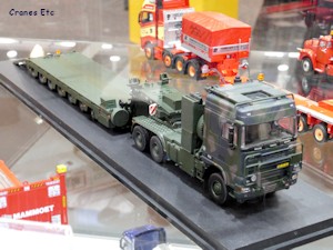 | Cat scrapers. |  | Cat forestry model fans will be well served. This is the 568 LL. A 555D Skidder will also be coming. |  | Big boy - the Nicolas Reel Carrier is a resin model. |  | New Nooteboom ballast carrier is on the way. |  | Link-Belt looking finished. |  | New Terex Explorer 5600 crane in the works. |  | Amended jib. |