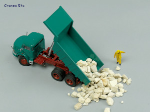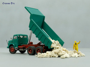 This model is of a historic truck, the Mercedes-Benz LAK 2624. It is a 6x6 chassis fitted with a heavy duty tipper body.