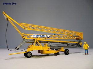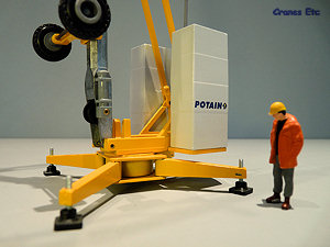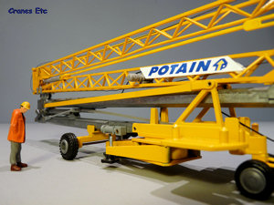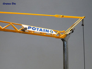 |  | Outriggers and counterweight. |  | Plastic Potain sign and trolley winch. |  | Reasonably straight jib. |  | Distinctive Potain styling is replicated perfectly. |