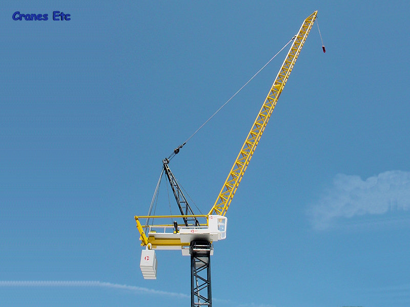 Casting and paintwork are of a high standard. The jib sections are cast as a two sides of a triangle; the underside is 'hollow'. Plastic is limited to the ladders, the cab glass, name boards, and the pulleys. The tie between the jib and the luffing bridle is string with crimped on connectors, and this is a good system.