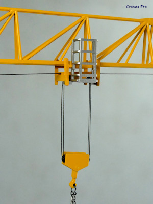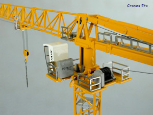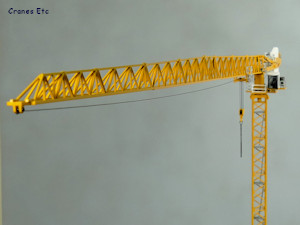 The jib is made up of three metal sections which interlock to make the full jib, which scales in as a full 75m jib. Conrad has done an excellent job to fabricate the jib elements to combine and be dead straight. There is no underside to the jib, and a plastic trolley motor adds detail at the tower end.