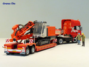 | The box has an excellent cover photo. |  |  | Heavy looking body. |  | Detailed cab with safety grille on the window. |  | The articulation of the drilling arm and body tilting allows horizontal drilling. |  | Shown with the body tilted forward. |  | The DP1500i being transported between sites on a Nooteboom Pendel X. |