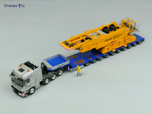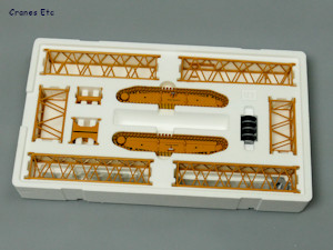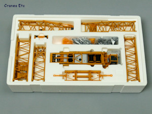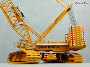 | The large box. |  |  | Heavy middle tray. |  | The model parts can be used as very good transport loads. |  | Nice cab. |  | Massive dimensions. |  | Modular stripped-down hook fitted. |  | Load testing. |  | Long main boom. |  | Suspended ballast tray. |  | Impressive. |  | Lifting a load on the luffing jib. |  | Looks great in Bracht colours. |