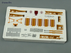The metal suspended ballast tray pins to the back of the crane and has metal ladders, although the main hanger is plastic. There are two large hydraulic rams to lift and set the frame.