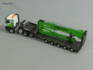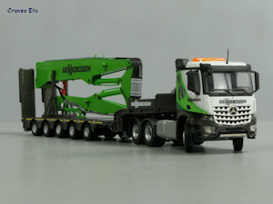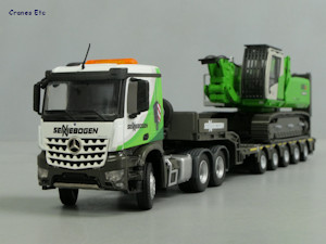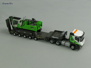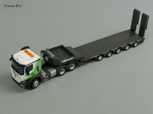 This model is a Mercedes-Benz Arocs 6x4 with a five axle trailer.