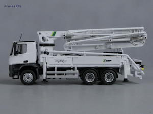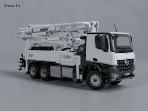 It is mounted on a Mercedes-Benz Arocs 6x4 chassis.