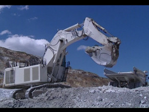 The video concentrates on large hydraulic excavators and there is ample film of the Hitachi EX5500 and EX3600, the Komatsu PC3000 and the Liebherr 994B. In addition to the machines loading large haul trucks there is film from the operator's cab.