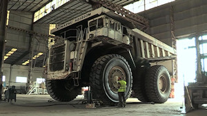 A feature of the DVD is the large number of machines filmed. These include a large variety of mining and earthworks related equipment, including the large Liebherr R 9350 and Hitachi EX5500, and other machines from Liebherr, Hitachi and Caterpillar, and also some older Demags. The filming includes most of the machines at work, and a few interviews with site managers, with some English sub-titling.