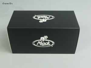 Mack branded box. The model is held within a pair of factory sealed expanded polystyrene trays.