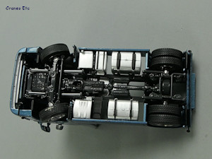 The Scania 143 has a detailed metal chassis. The