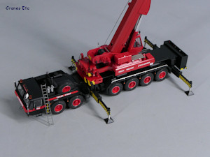 The outriggers can be extended and lowered, and the model can be supported wheels-free