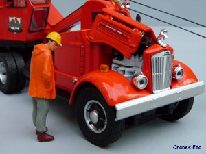 engine under the hood. The hinges on the hood and cab