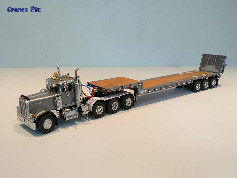 | This is a model of the eterbilt 379 Day Cab with a Nelson Tri-Axle Hydraulic Bi-Fold Ramp Trailer. Peterbilt was founded in 1938 and is a famous producer of American trucks.