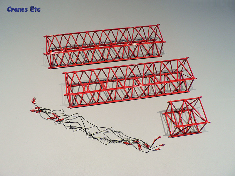 The 40ft boom sections are the same as the one provided with the crane although the 10ft section is slightly different with some additional fixing positions which are presumably used on later variants of the model. Overall the kit adds 55cm (22in) to the boom length of the base model.