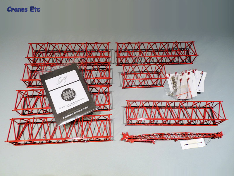 | This accessory set is for the Manitowoc 4100W Ringer Crane model and extends the boom by 5 x 40ft sections, and the back mast gets both a 40ft and 20ft section. An additional #123 fly jib is also provided.