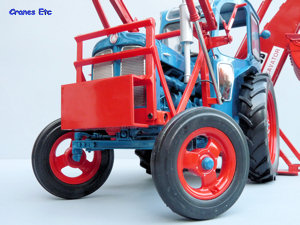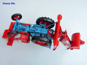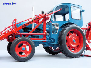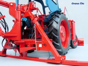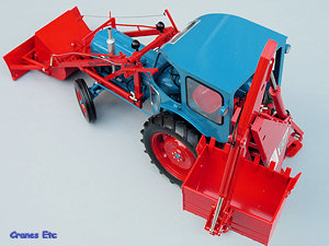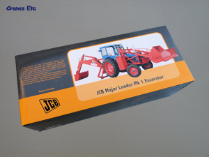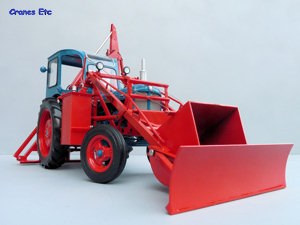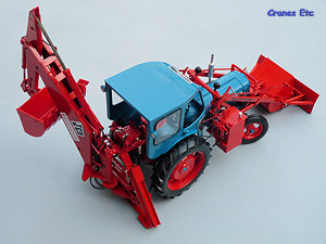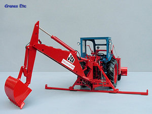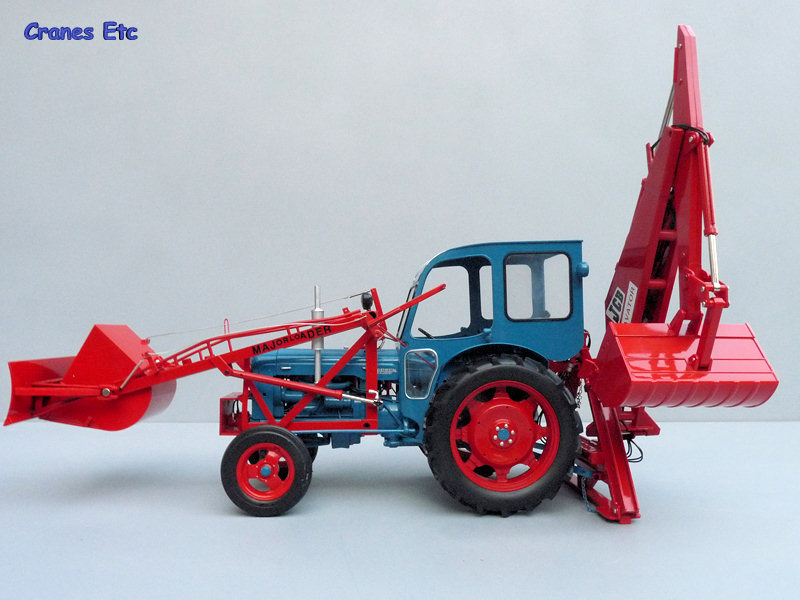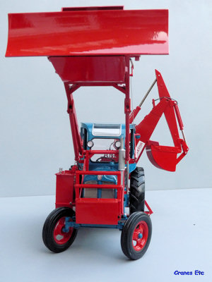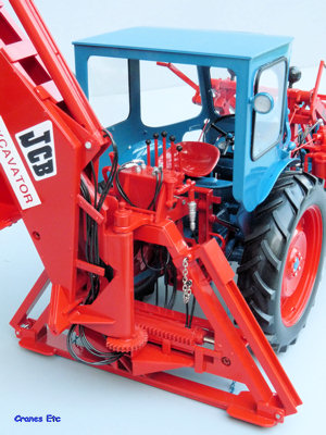 | This is a large scale model of the first JCB ever made. It is a backhoe mounted on a Fordson Major tractor with loader, and in addition it includes a blade which was a rare attachment.