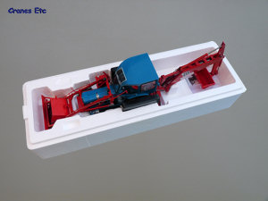 | The big box. |  |  | Blade at the front. |  | Mass of detail on the backhoe. Pins on chains keep the stabilisers in position. |  | Stabilisers lowered. |  | Backhoe folded for transport. |  | The shovel lifts to a good height. |
