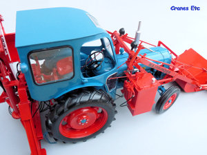 The loader assembly works well and it can lift the bucket to a good height. Tipping the bucket can be done by pulling the lever outside the cab just like on the original. The blade can be raised up but there seems to be no way to keep it raised to enable the shovel to be used for digging.