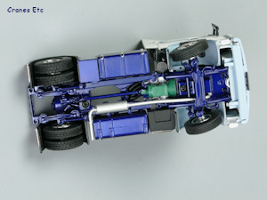 The transmission is nicely detailed and includes a coloured gearbox. The suspension is accurately modelled and the exhaust system looks good too. The wheels are smart and have different tyres on the steering and driven axles.