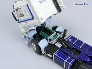 The cab tilts to reveal a detailed engine.