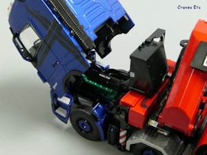 a light bar on the roof and the mirrors are colour-coded. The cab is decorated